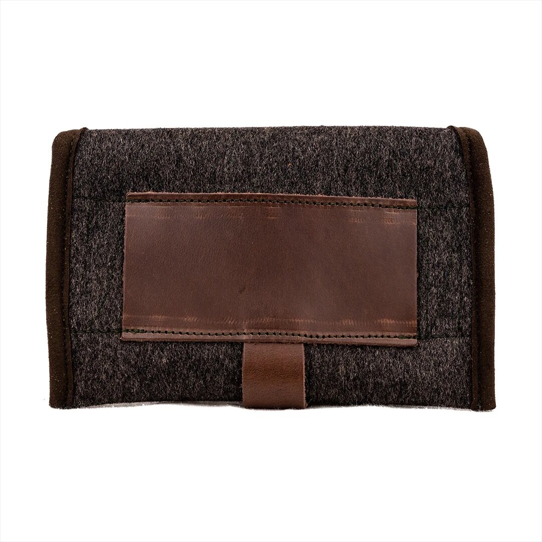 Buitenkant: Loden (Vilt), met Leer te bevestigen aan de riem