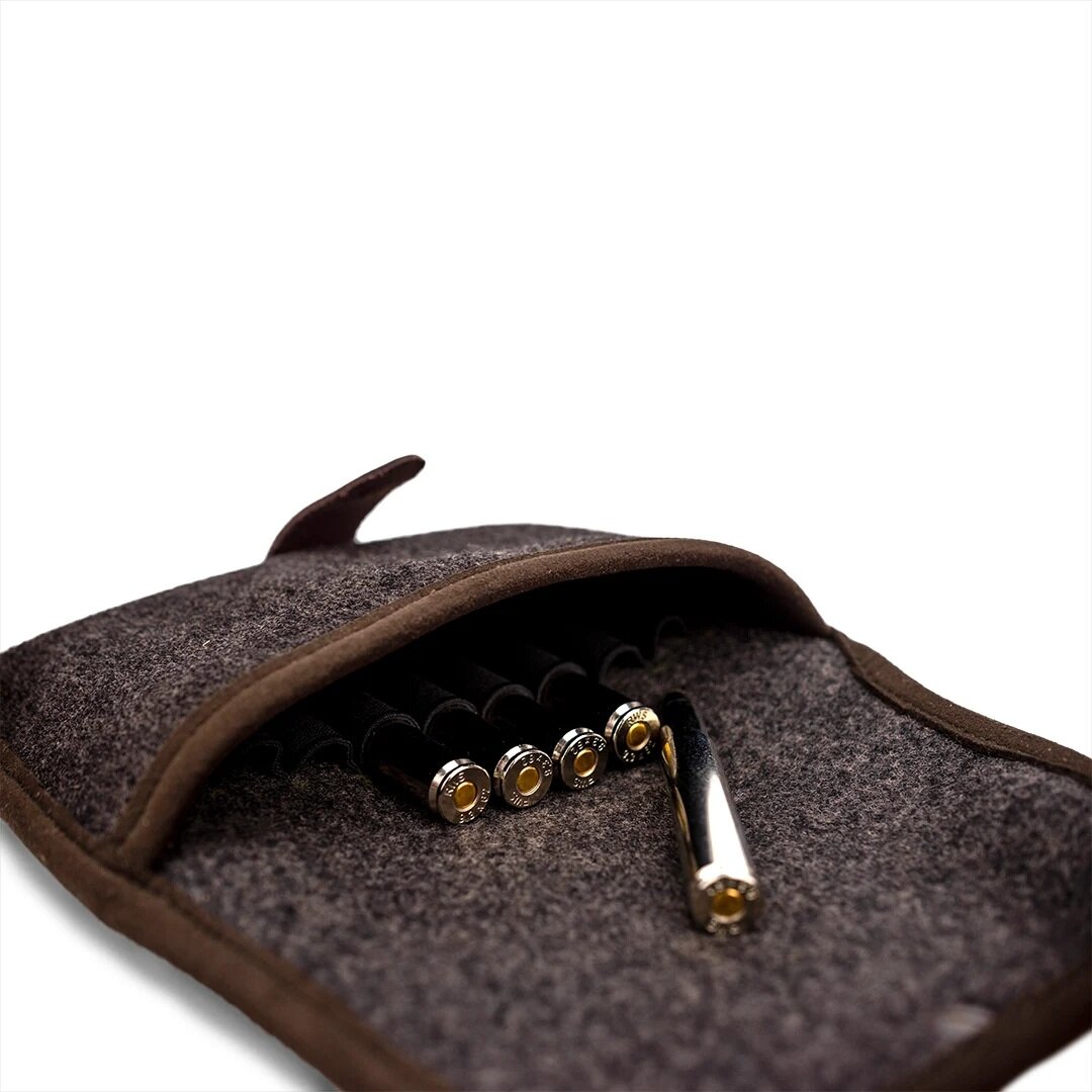 Binnenkant: Loden (Vilt), met elastiek voor de patronen te bevestigen