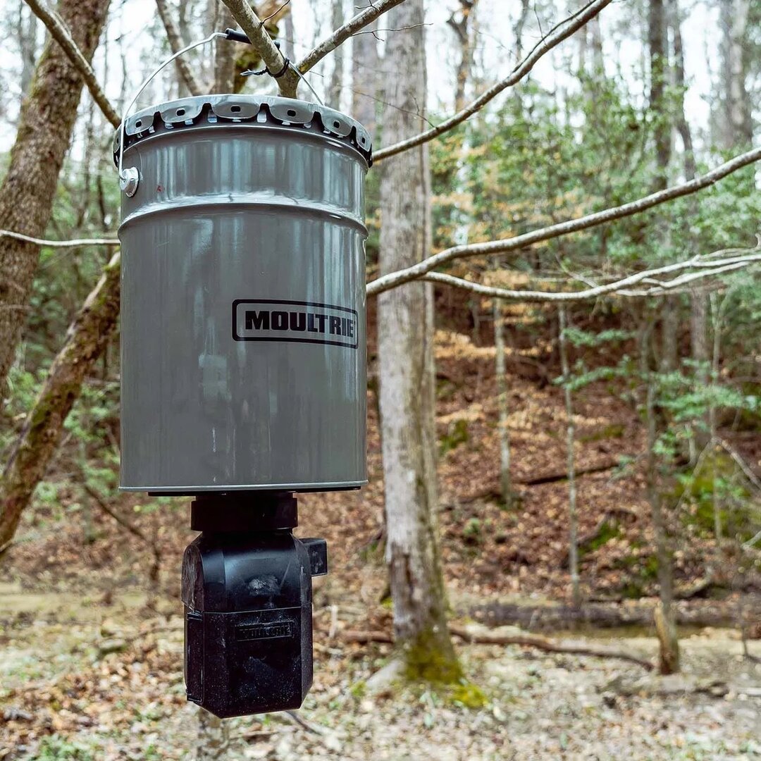 Zarządzaj swoim podajnikiem w dowolny sposób dzięki elastycznym opcjom programowania. Użyj wbudowanego timera, aby ręcznie ustawić harmonogram karmienia lub połącz się przez Bluetooth z aplikacją Moultrie, aby dostosować ustawienia. W zasięgu Bluetooth możesz synchronizować pory karmienia z wschodem i zachodem słońca, tworzyć indywidualne harmonogramy oraz monitorować szacunkowy poziom paszy.