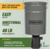 Podajnik 40LB HANGING DIRECTIONAL jest odpowiedni do podawania paszy zwierzętom i rybom i należy do najbardziej zaawansowanych podajników dostępnych obecnie na rynku. Zbiornik na paszę wykonany jest z wytrzymałego metalu, który zapewnia ochronę przed warunkami pogodowymi. Ulepszona jednostka PRO HUNTER III DIRECTIONAL posiada drzwiczki na zawiasach oraz podświetlany ekran cyfrowy, co ułatwia montaż i konserwację w terenie.