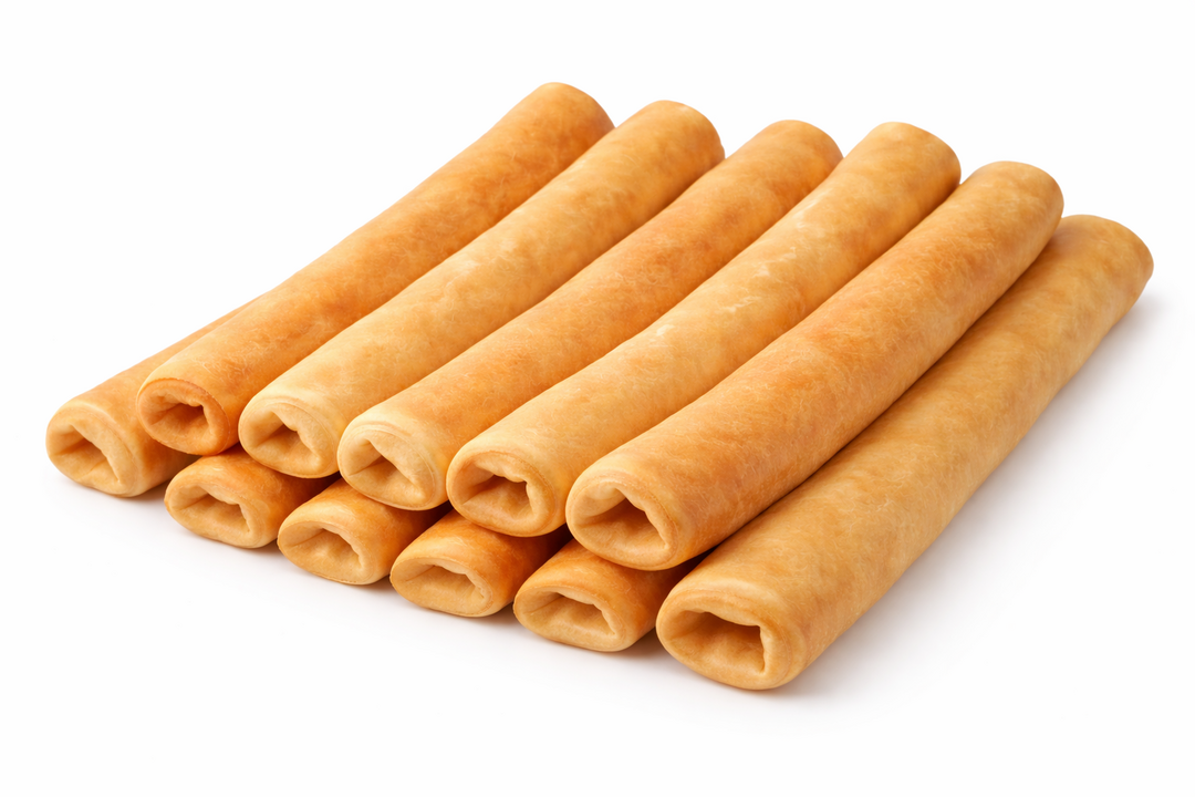 Geräucherte gepuffte Rinderrolle aus Rinderhaut (25 cm). Eiweißreich, fettarm und ideal als schmackhafter Kausnack. Verpackt zu 2 Stück. Produktnummer: 188321
