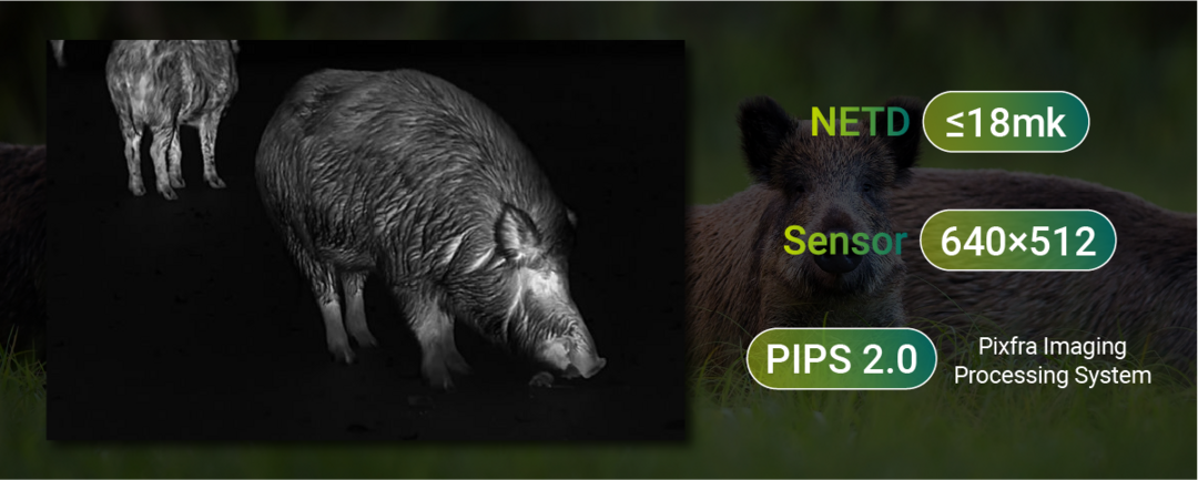 Ervaar de kracht van PIPS 2.0, een algoritme dat omgevingsruis vermindert en contrast en detail versterkt. Het verfijnt de beeldkwaliteit, elimineert vertraging en accentueert doelwitdetails, waardoor thermische precisie nieuwe hoogten bereikt.
