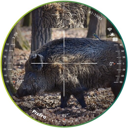 De Pixfra Volans V850 combineert geavanceerde digitale technologie met een robuuste, veldklare constructie voor haarscherpe prestaties bij dag én nacht. Dankzij de professionele instelbare diafragmaopening van F1.2–F3.0 past de richtkijker zich flexibel aan wisselende lichtomstandigheden aan en levert hij constant heldere, contrastrijke beelden.