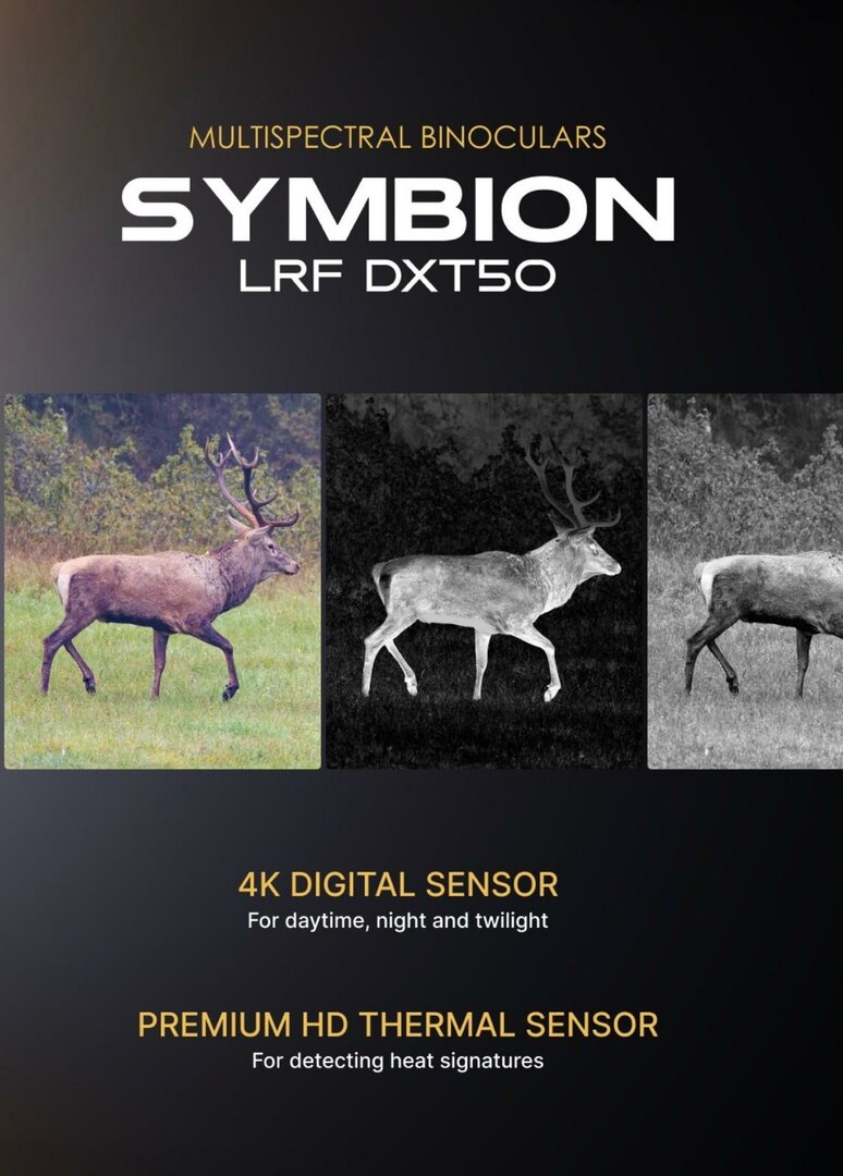 De Symbion LRF warmtebeeldverrekijkers zijn verkrijgbaar in twee modellen: DXT50 en DXR50. Ze combineren een 4K digitale sensor voor scherpe observatie overdag en in de schemering met een hoogwaardige warmtebeeldsensor voor het detecteren van warmtesignaturen onder alle omstandigheden.
