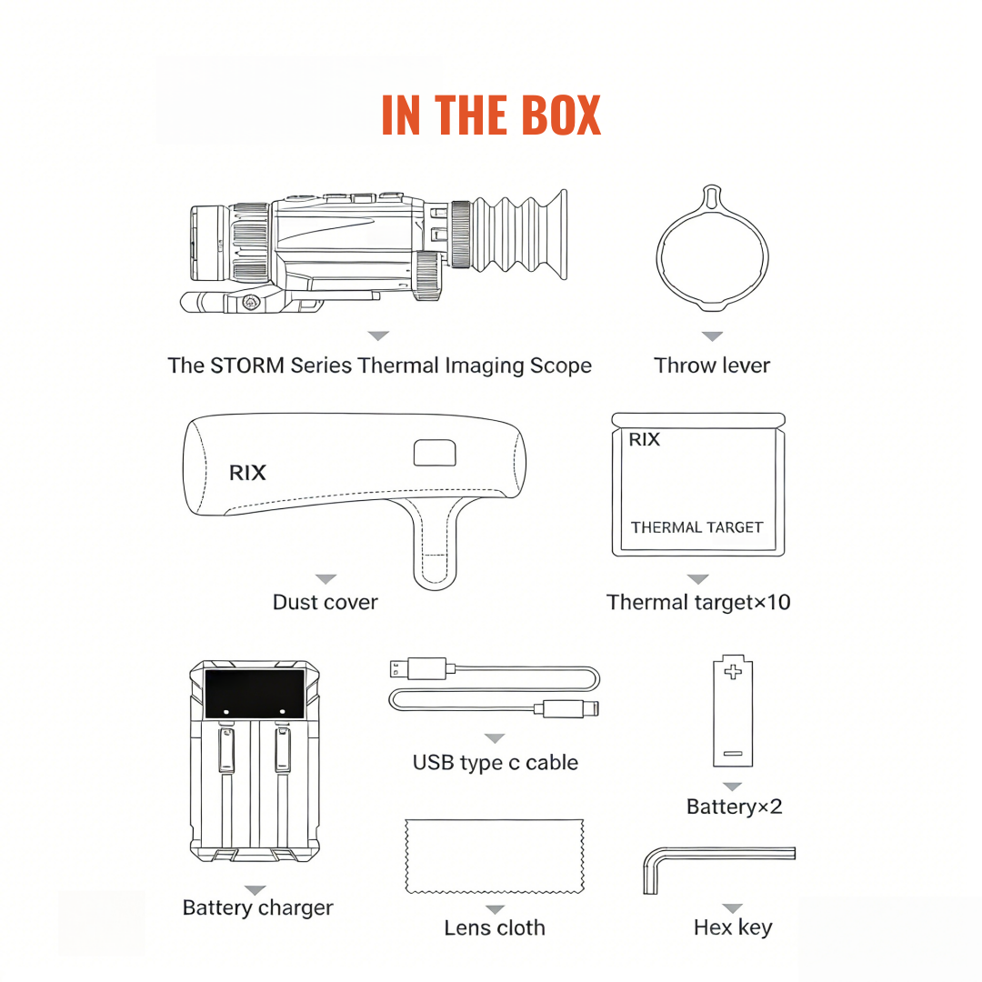 Wanneer het zicht afneemt, geeft STORM je een voorsprong. De geavanceerde 12 µm sensor en het heldere 1024 AMOLED-scherm doorbreken vervorming met Sunny Mode, terwijl Rain Mode de gevoeligheid verhoogt bij vochtige omstandigheden. Van stortregen tot dichte mist, STORM houdt je doel scherp in beeld.