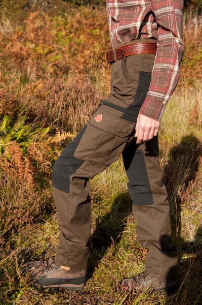 stretch nylon en super canvas broek in bruin-zwart Productnummer: K1391