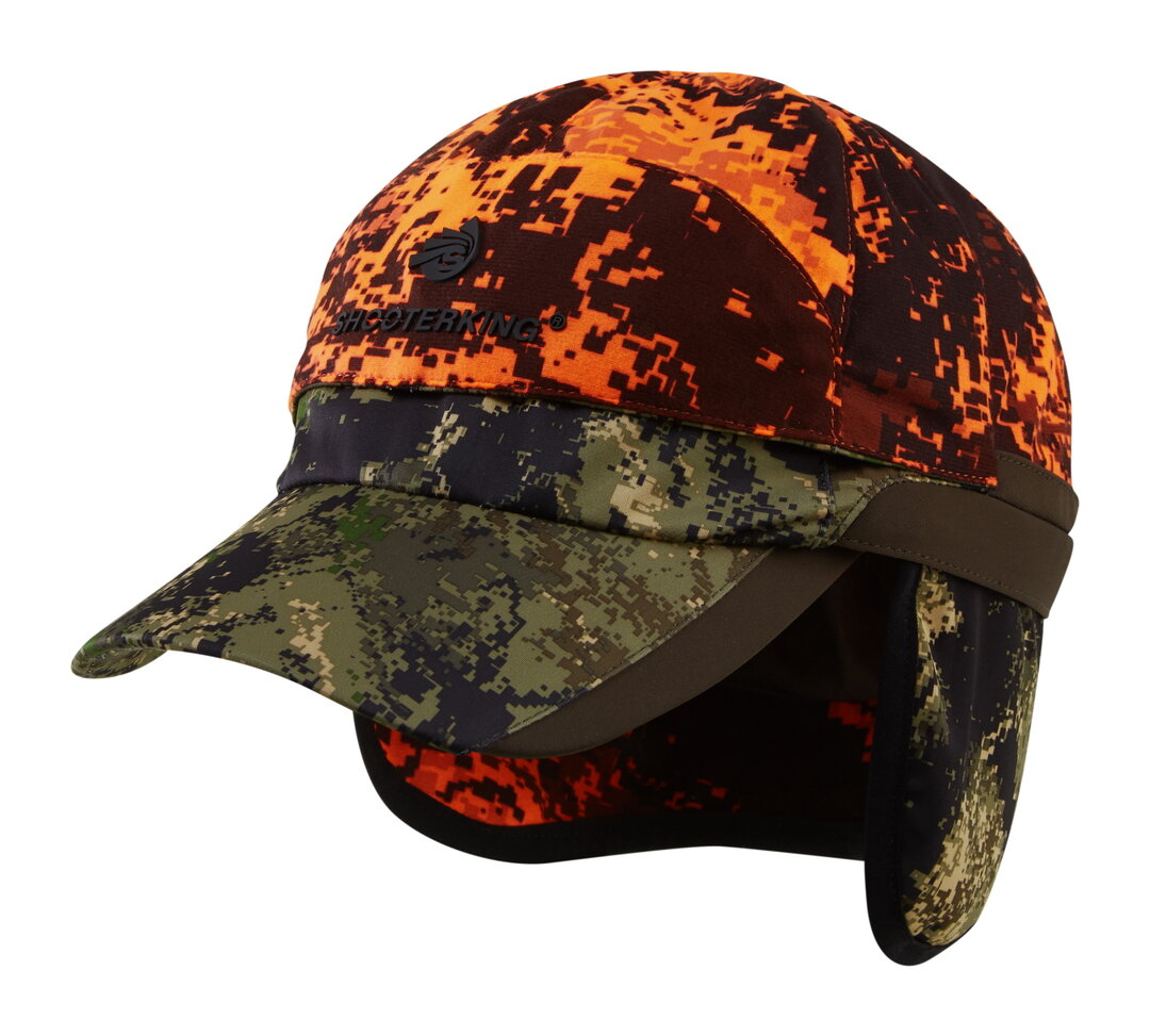 De oorkleppen zorgen voor extra warmte en bescherming tegen gure wind, en kunnen eenvoudig afgenomen worden wanneer het weer milder wordt. Voor drijfjachten is de pet omkeerbaar: de binnenzijde heeft een digitale oranje camouflage, zodat je goed zichtbaar bent voor andere jagers zonder concessies te doen aan stijl of functionaliteit.