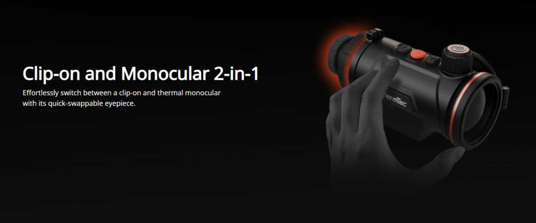 Schakel moeiteloos tussen clip-on en thermisch monoculair dankzij het snel verwisselbare oculair.