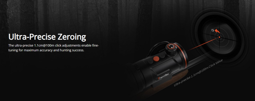 De uiterst precieze 1,1 cm@100 m klikinstellingen maken fijnafstelling mogelijk voor maximale nauwkeurigheid en jachtsucces.
