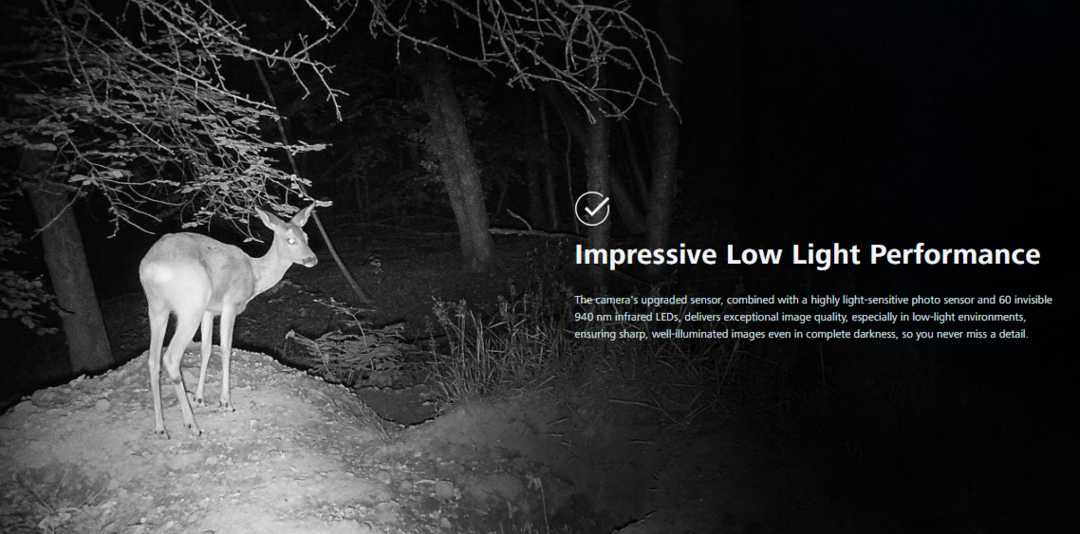 De ZEISS IR Boost-technologie optimaliseert 940 nm infrarood licht en levert een beeldkwaliteit die vergelijkbaar is met 850 nm IR-licht, terwijl het onzichtbaar blijft voor wilde dieren.